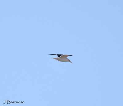 Entre las gaviotas sombrías también ha aparecido una infiltrada, una gaviota patiamarilla de tercer año (sin anillar). Ver una patiamarilla por aquí no es nada normal aunque en muchos otros puntos de la costa española sea muy común.